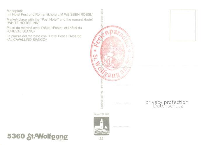 73602281 St Wolfgang Salzkammergut Marktplatz Hotel Post Romantikhotel Im Weissen Roessl postalisch nicht gelaufen Erhaltung siehe scans [FriedD77] KatCode: 11390315040717