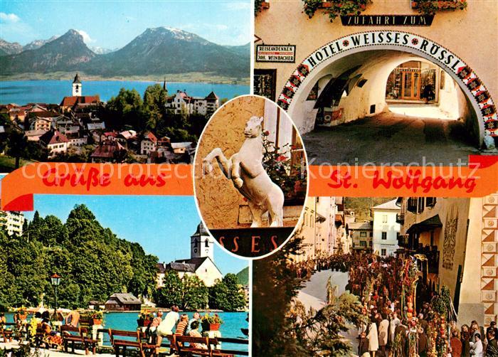 73227424 St Wolfgang Salzkammergut Panorama Wolfgangsee Alpen Hotel Weisses Roessl Seepromenade Kirche Palmsonntag postalisch nicht gelaufen Erhaltung siehe scans [FriedD77] KatCode: 11390315040717