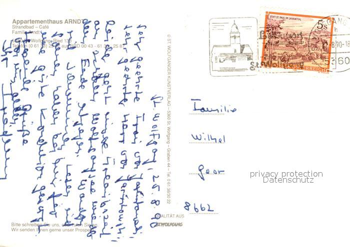 73518087 alte Postkarte St Wolfgang Salzkammergut Ried Appartementhaus Arndt postalisch gelaufen Erhaltung siehe scans [KathaD81] KatCode: 11390315040717