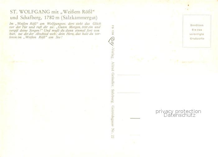 73095754 St Wolfgang Salzkammergut Weissem Roessl Schafberg postalisch nicht gelaufen Erhaltung siehe scans [NatalD47] KatCode: 11390315040717
