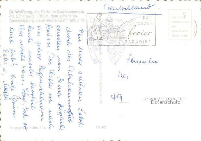 72288259 alte Postkarte St Wolfgang Wolfgangsee Fliegeraufnahme postalisch gelaufen Erhaltung siehe scans KatCode: 11390315040717