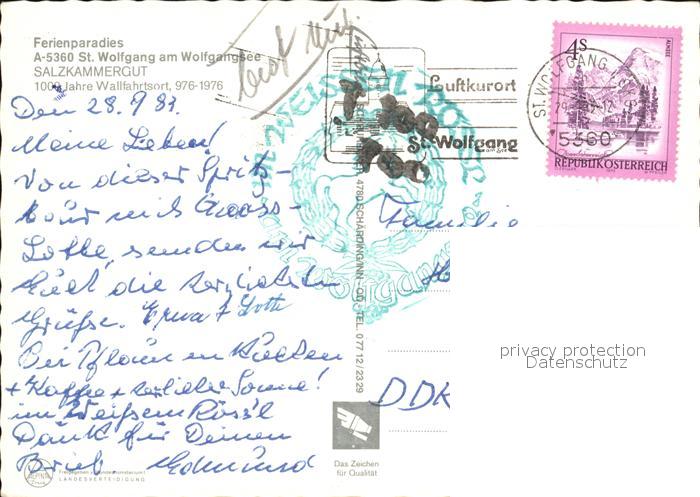 72540508 alte Postkarte St Wolfgang Wolfgangsee Fliegeraufnahme mit Wolfgangsee postalisch gelaufen Erhaltung siehe scans [LiesaD40 kt122box] KatCode: 11390315040717