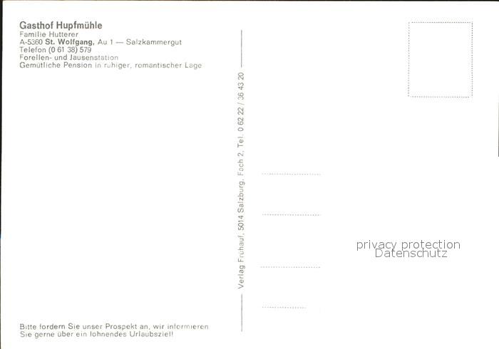 72541097 St Wolfgang Wolfgangsee Gasthaus Hupfmuehle postalisch nicht gelaufen Erhaltung siehe scans [AndreD76 kt119box] KatCode: 11390315040717