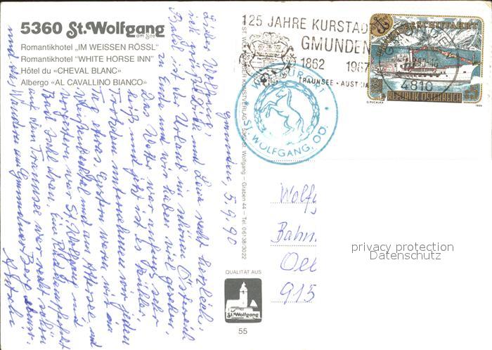71899891 alte Postkarte St Wolfgang Wolfgangsee Hotel Restaurant Im Weissen Roessl Wolfgangsee Segelboot Kirche Alpenpanorama postalisch gelaufen Erhaltung siehe scans KatCode: 11390315040717