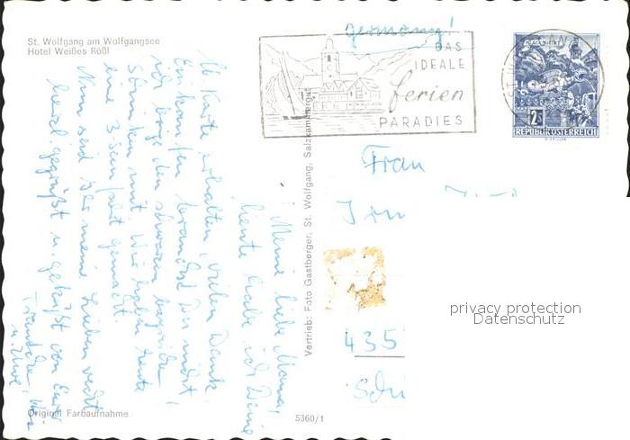 72309462 alte Postkarte St Wolfgang Wolfgangsee Hotel Weisses Roessel postalisch gelaufen Erhaltung siehe scans KatCode: 11390315040717