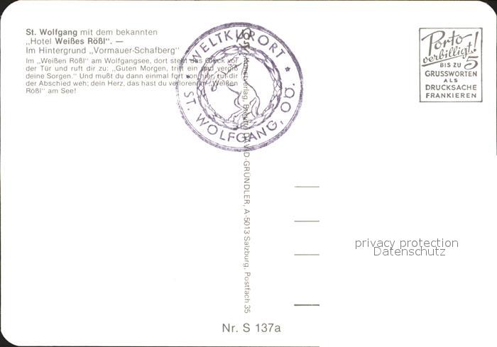 71901951 St Wolfgang Wolfgangsee Hotel Weisses Roessl postalisch nicht gelaufen Erhaltung siehe scans KatCode: 11390315040717