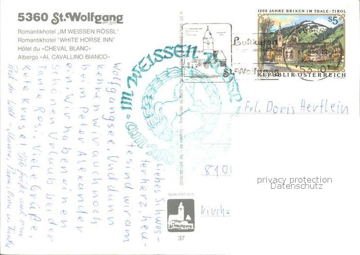 72263443 alte Postkarte St Wolfgang Wolfgangsee Hotel Weisses Roessl postalisch gelaufen Erhaltung siehe scans KatCode: 11390315040717