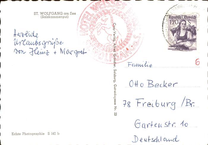 71475663 alte Postkarte St Wolfgang Wolfgangsee Hotel Weisses Roessl am Wolfgangsee Kirche postalisch gelaufen Erhaltung siehe scans KatCode: 11390315040717