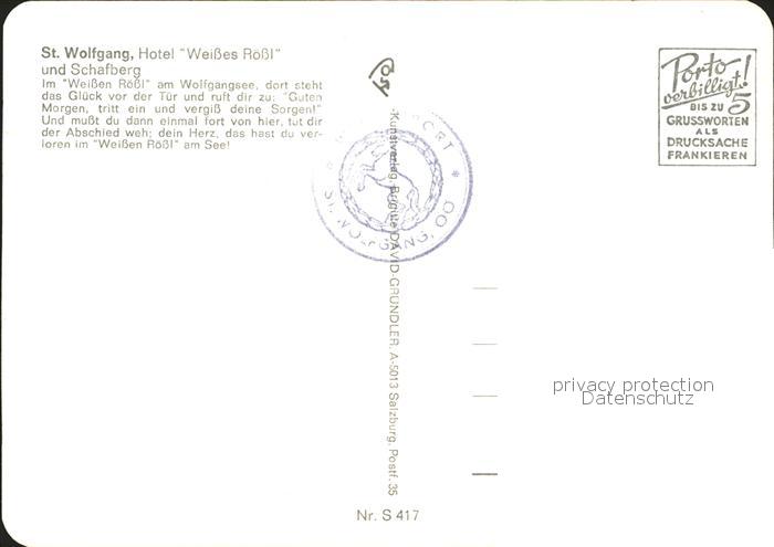 71909966 St Wolfgang Wolfgangsee Hotel Weisses Roessl Schafberg postalisch nicht gelaufen KatCode: 11390315040717