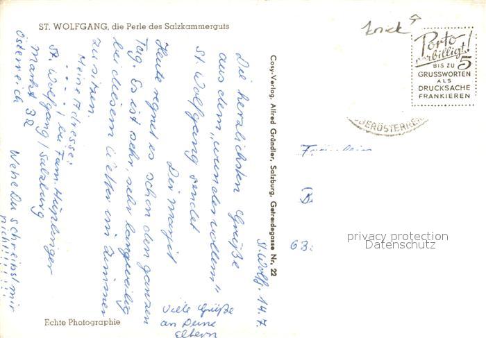 73155745 alte Postkarte St Wolfgang Wolfgangsee Teilansicht mit Kirche postalisch gelaufen Erhaltung siehe scans [WerneD78] KatCode: 11390315040717
