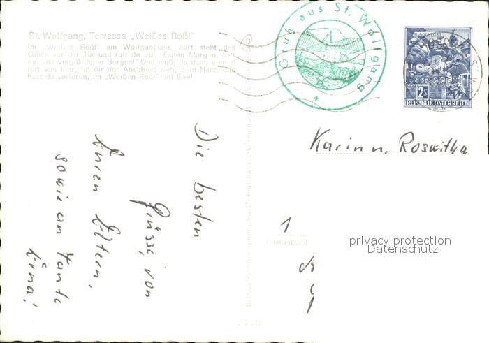 72108369 alte Postkarte St Wolfgang Wolfgangsee Terrasse Weisses Roessl Hotel %re postalisch gelaufen Erhaltung siehe scans KatCode: 11390315040717