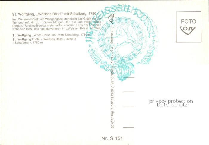 72306221 St Wolfgang Wolfgangsee Weisses Roessl Hotel mit Schafberg postalisch nicht gelaufen Erhaltung siehe scans KatCode: 11390315040717