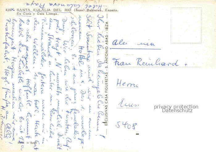 74137884 old postcard Sta Eulalia Santa Eulalia del Rio Ibiza ES Es Cana y Cala Llonga postalisch gelaufen Erhaltung siehe scans [WerneD78] KatCode: 11510