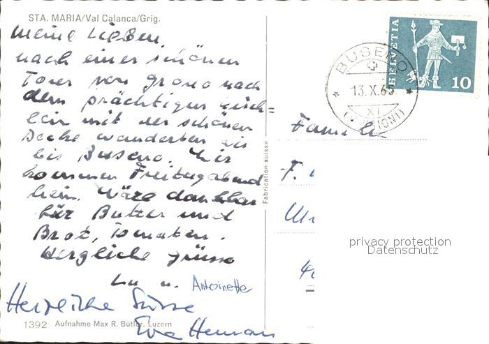 11837197 alte Postkarte Sta Maria Calanca Burgruine Kirche Teilansicht postalisch gelaufen Erhaltung siehe scans KatCode: 11470100340292