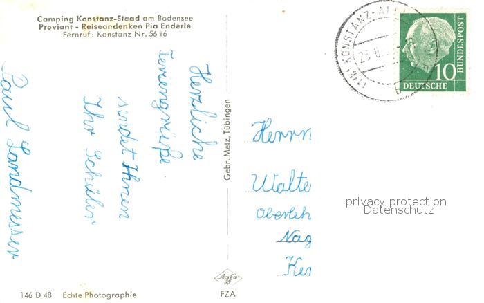 73831721 alte Postkarte Staad Konstanz Campingplatz Bodenseeblick postalisch gelaufen Erhaltung siehe scans [WerneD78] KatCode: 11110008335043