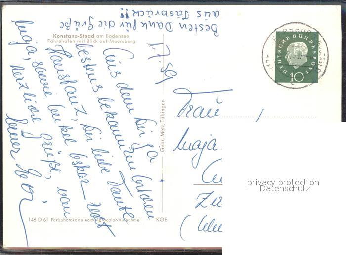 72099192 alte Postkarte Staad Konstanz Faehrehafen mit Blick auf Meersburg postalisch gelaufen Erhaltung siehe scans KatCode: 11110008335043