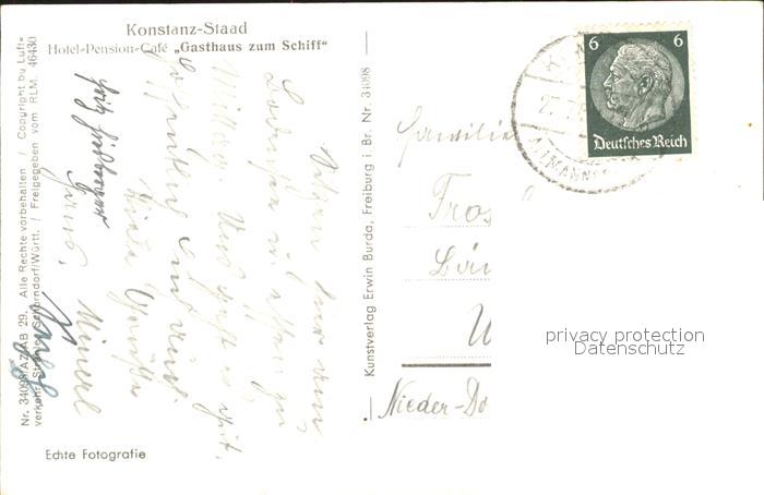 31841354 alte Postkarte Staad Konstanz Faehrhafen Fliegeraufnahme postalisch gelaufen Erhaltung siehe scans KatCode: 11110008335043