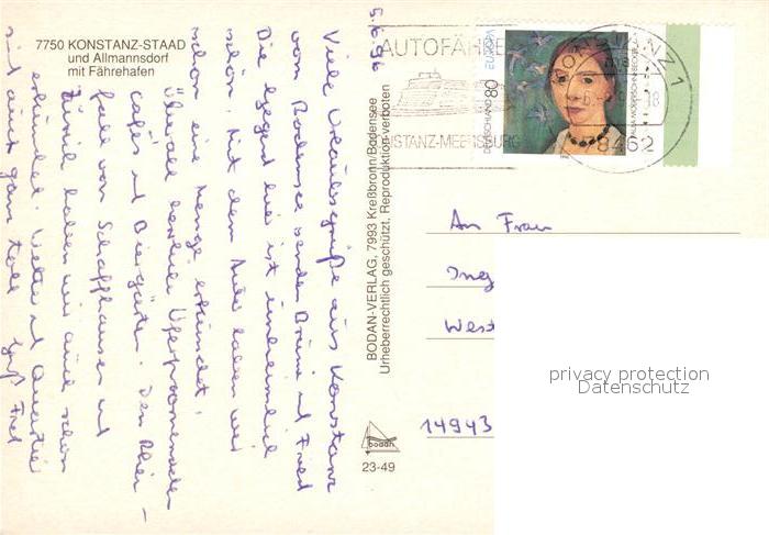 73124055 alte Postkarte Staad Konstanz Fliegeraufnahme Allmannsdorf Faehrenhafen postalisch gelaufen Erhaltung siehe scans [NatalD47] KatCode: 11110008335043