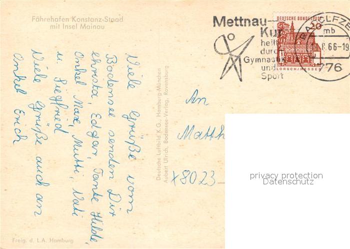 72974055 alte Postkarte Staad Konstanz Insel Mainau Fliegeraufnahme postalisch gelaufen Erhaltung siehe scans [PaolaD17] KatCode: 11110008335043
