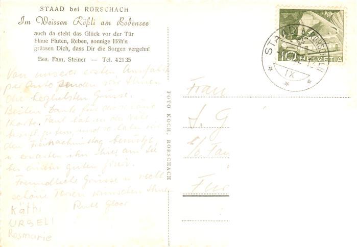 13872385 alte Postkarte Staad Rorschach SG Im Weissen Roessli am Bodensee Gartenwirtschaft postalisch gelaufen Erhaltung siehe scans [WerneD78] KatCode: 11470190560604