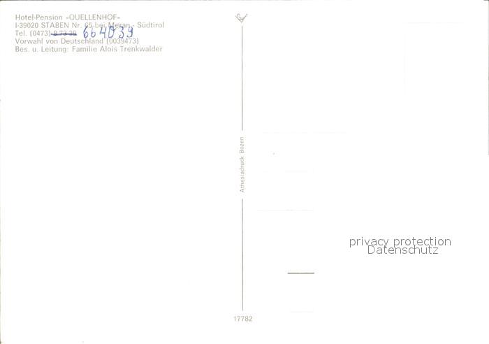 Staben Hotel Pension Quellenhof postalisch nicht gelaufen Erhaltung siehe scans