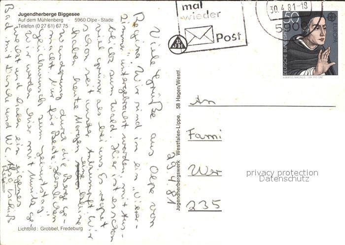 72533643 alte Postkarte Stade Biggesee Jugendherberge Kaminabend Panorama Biggesee postalisch gelaufen Erhaltung siehe scans [FriedD77 kt118box] KatCode: 11110005966024
