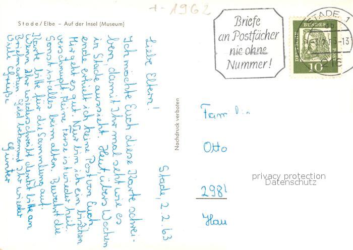 73054562 alte Postkarte Stade Niederelbe Auf der Insel Museum postalisch gelaufen Erhaltung siehe scans [KathaD81] KatCode: 11110003359038