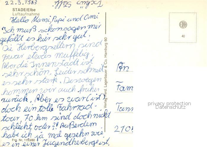 73726568 Stade Niederelbe Fliegeraufnahme Gesamtansicht postalisch nicht gelaufen Erhaltung siehe scans [LiesaD40] KatCode: 11110003359038