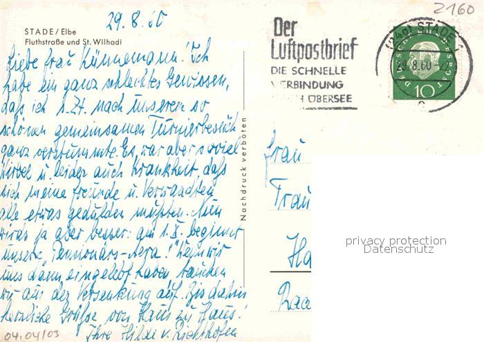 72910775 alte Postkarte Stade Niederelbe Fluthstrasse und St Wilhadi Kirche postalisch gelaufen Erhaltung siehe scans [FriedD77] KatCode: 11110003359038