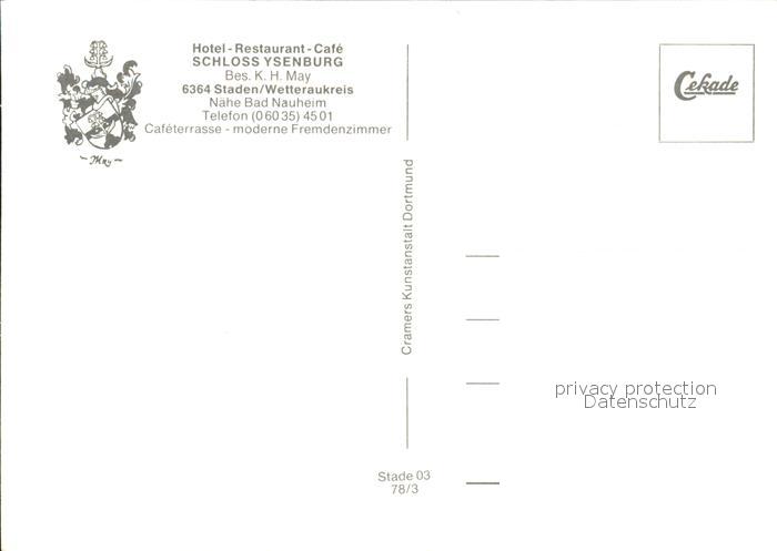 72560528 Staden Hessen Hotel Restaurant Cafe Schloss Ysenburg postalisch nicht gelaufen Erhaltung siehe scans [KathaD79] KatCode: 11110006440007