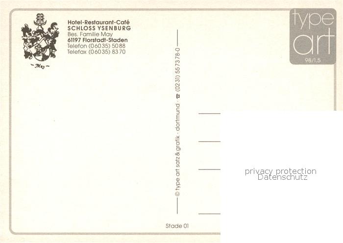 73217859 Staden Hessen Hotel Restaurant Cafe Schloss Ysenburg postalisch nicht gelaufen Erhaltung siehe scans [KathaD81] KatCode: 11110006440007