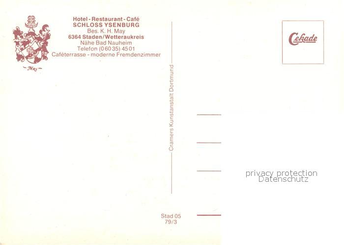 73207929 Staden Hessen Schloss Ysenburg Seufzerbruecke Loewsches Schloss Panorama postalisch nicht gelaufen Erhaltung siehe scans [KathaD81] KatCode: 11110006440007