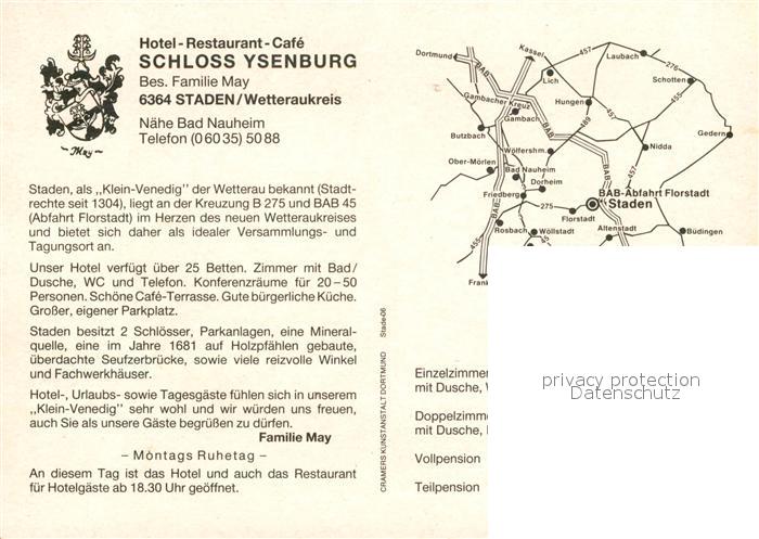 73207937 Staden Hessen Schloss Ysenburg postalisch nicht gelaufen Werbekarte (keine Postkarte) Erhaltung siehe scans [KathaD81] KatCode: 11110006440007