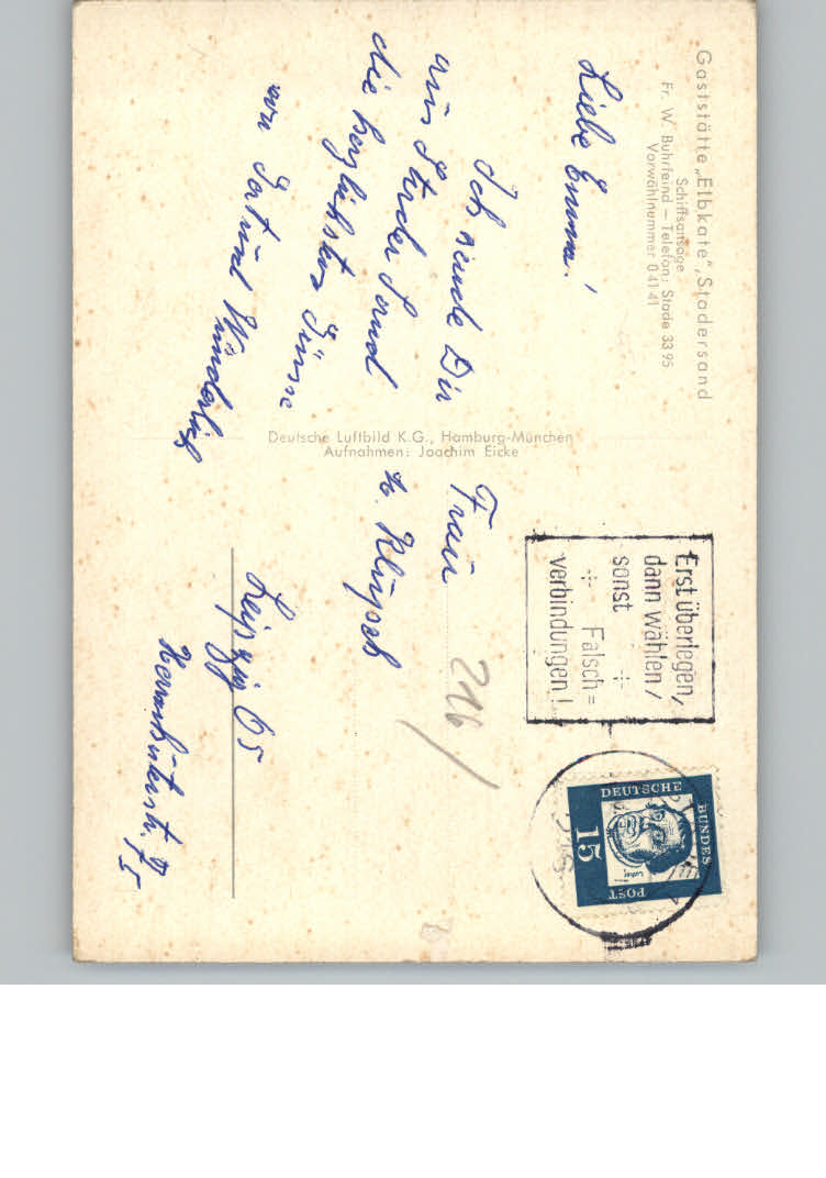 31117812 Stadersand Gaststaette Elbkarte postalisch nicht gelaufen KatCode: 11110003359038