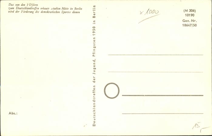 41414304 Stadion Stadium Estadio– Bau FDJlern Berlin postalisch nicht gelaufen Erhaltung siehe scans Alte Ansichtskarte Postkarte Paol Katcode 22520000002600