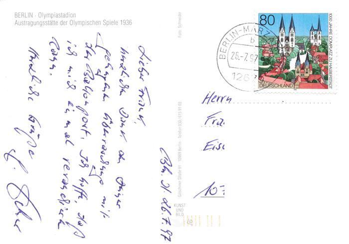 74027294 alte Postkarte Stadion Stadium Estadio Berlin Olympia postalisch gelaufen Erhaltung siehe scans [SanaeD93] KatCode: 22520000002600
