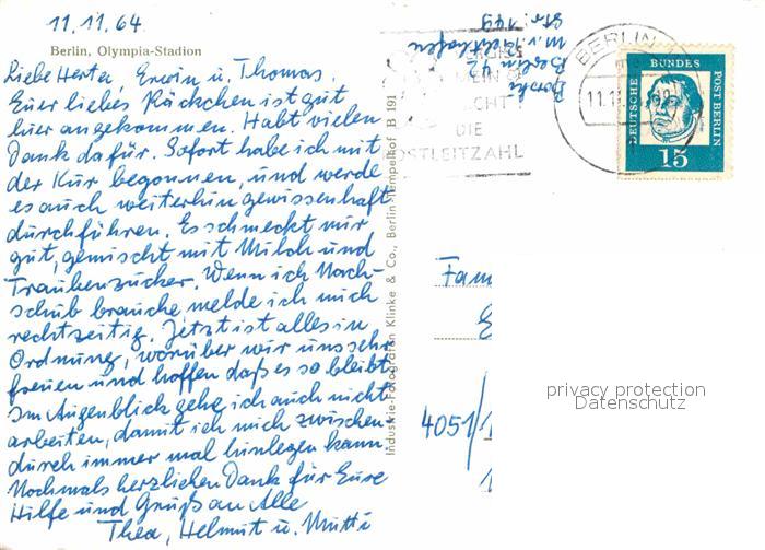 12878134 Stadion Stadium Estadio– Berlin Olympia-Stadion postalisch gelaufen Erhaltung siehe scans [PaolaD17] alte Postkarte Paol Katcode 22520000002600