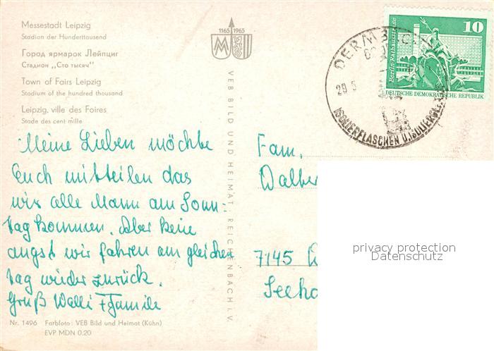 73491039 Stadion Stadium Estadio– der Hunderttausend Leipzig postalisch gelaufen Erhaltung siehe scans [PaolaD17] alte Postkarte Paol Katcode 22520000002600