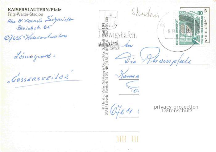 74051942 alte Postkarte Stadion Stadium Estadio Fritz Walter Kaiserslautern postalisch gelaufen Erhaltung siehe scans [IrynaD87] KatCode: 22520000002600