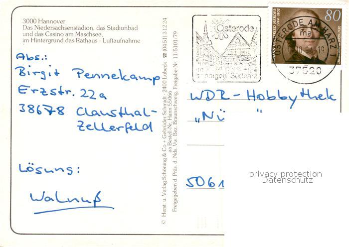 73491650 Stadion Stadium Estadio– Hannover Niedersachsenstadion Fliegeraufnahme Casino am Maschsee postalisch gelaufen Erhaltung siehe scans [PaolaD17] alte Postkarte Paol Katcode 22520000002600