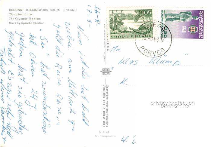 12878143 Stadion Stadium Estadio– Helsinki Helsingfors Olympiastadion postalisch gelaufen Erhaltung siehe scans [PaolaD17] alte Postkarte Paol Katcode 22520000002600