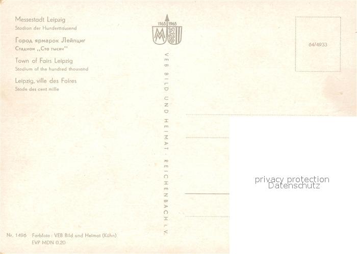 73112269 Stadion Stadium Estadio– Hunderttausend Leipzig postalisch nicht gelaufen Erhaltung siehe scans [PaolaD17] Paol Katcode 22520000002600