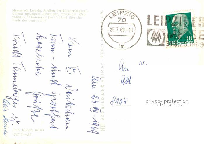 12877555 Stadion Stadium Estadio– Leipzig Stadion der Hunderttausend postalisch gelaufen Erhaltung siehe scans [PaolaD17] alte Postkarte Paol Katcode 22520000002600