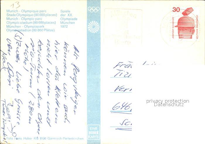 72602335 Stadion Stadium Estadio– Muenchen Olympia-Stadion Olympiapark postalisch gelaufen Erhaltung siehe scans [PaolaD17] alte Postkarte Paol Katcode 22520000002600