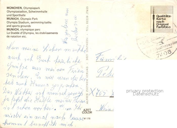 73595798 Stadion Stadium Estadio– Muenchen Olympiapark Fliegeraufnahme postalisch nicht gelaufen Erhaltung siehe scans [PaolaD17] Paol Katcode 22520000002600