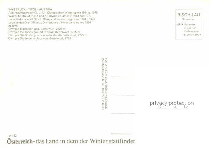 72883167 Stadion Stadium Estadio– Olympia-Eisstadion Innsbruck postalisch nicht gelaufen Erhaltung siehe scans [PaolaD17] Paol Katcode 22520000002600