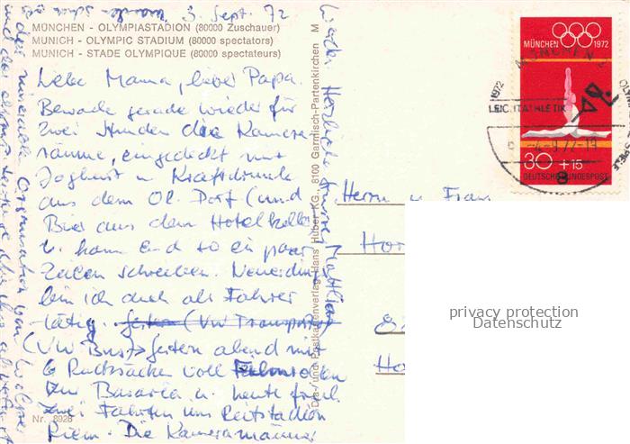 74132733 alte Postkarte Stadion Stadium Estadio– Olympia Olympique Muenchen postalisch gelaufen Erhaltung siehe scans [SanaeD93] KatCode: 22520000002600