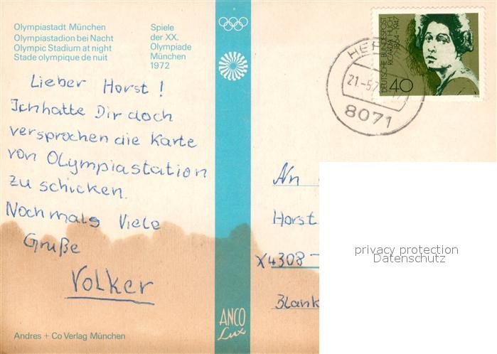 73085089 Stadion Stadium Estadio– Olympiastadion Muenchen postalisch gelaufen Erhaltung siehe scans [PaolaD17] alte Postkarte Paol Katcode 22520000002600