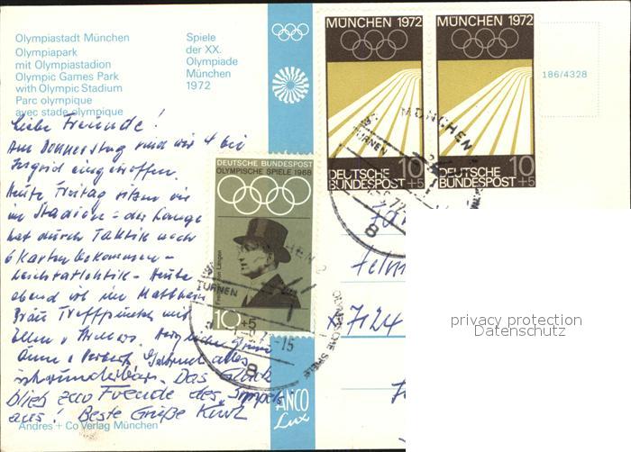 72607404 Stadion Stadium Estadio– Olympiastadion Olympiapark Muenchen postalisch gelaufen Erhaltung siehe scans [PaolaD17] alte Postkarte Paol Katcode 22520000002600