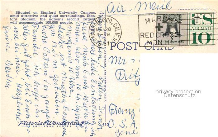 72621487 Stadion Stadium Estadio– Stanforf University Palo Alto California postalisch gelaufen Erhaltung siehe scans [PaolaD17] alte Postkarte Paol Katcode 22520000002600